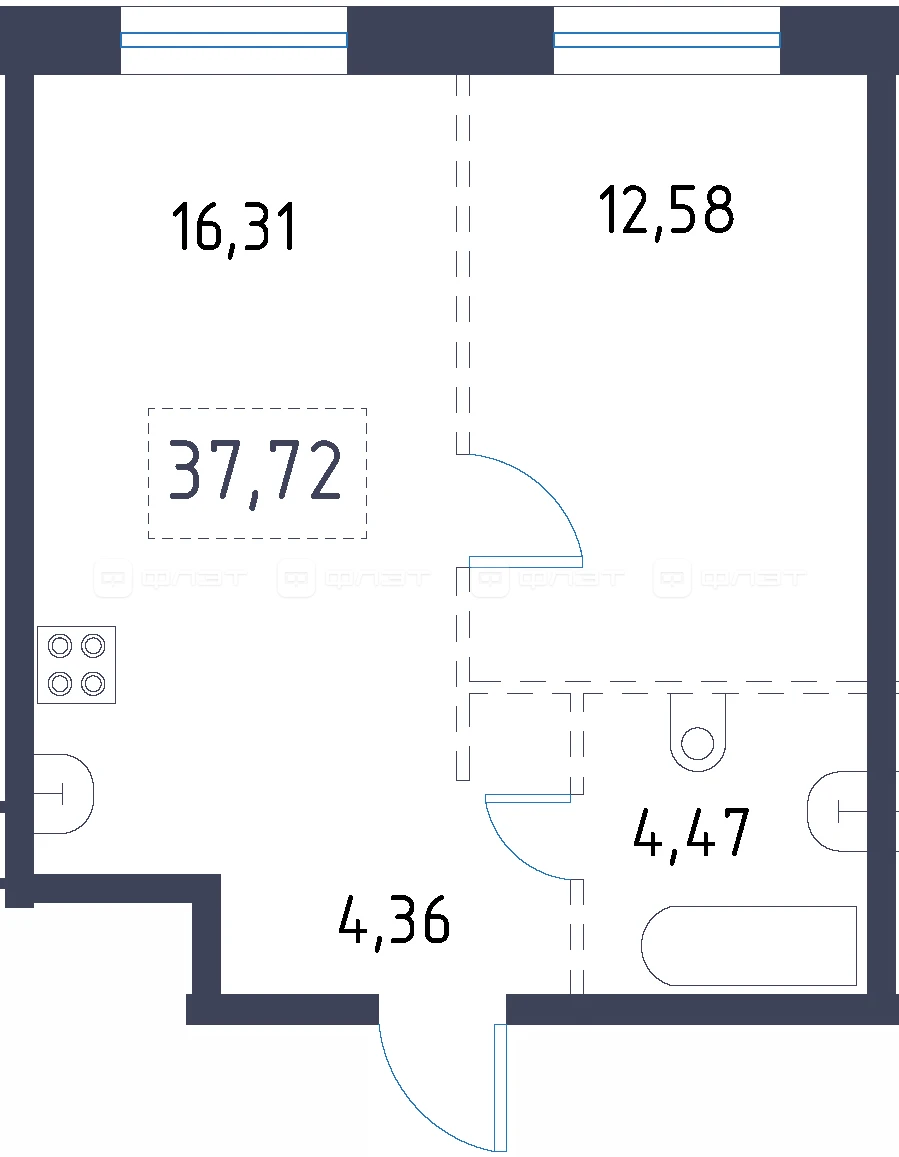 1-комнатная квартира, №57